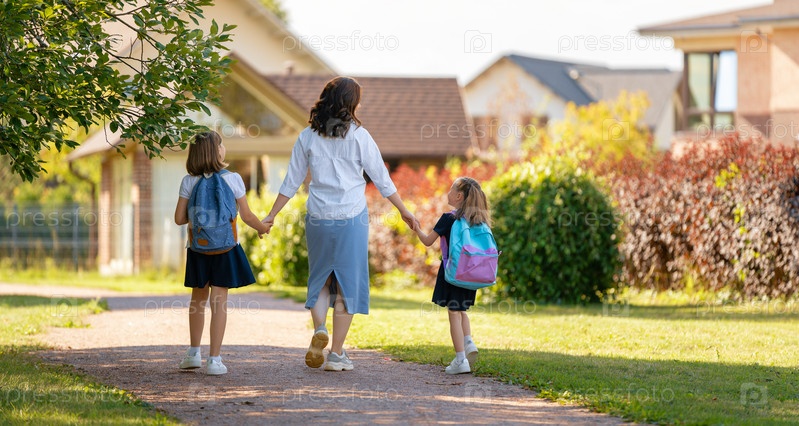 Родители и ученики идут в школу