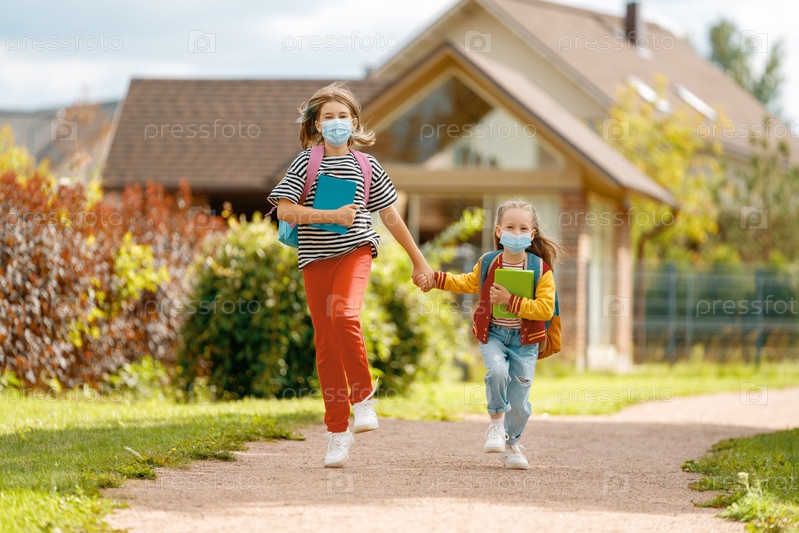 Девочки с рюкзаком идут в школу