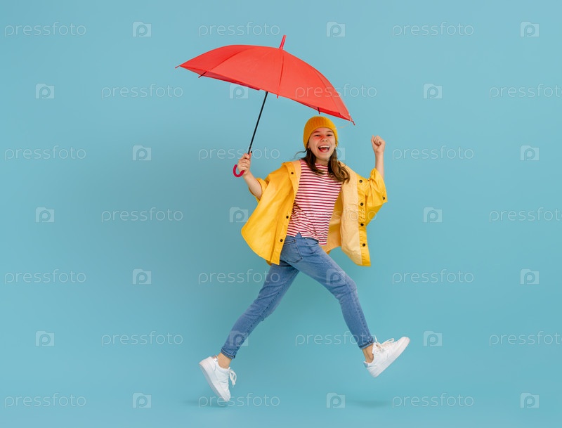 Малыш с зонтиком на цветном фоне