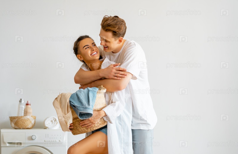 Влюбленная пара занимается стиркой