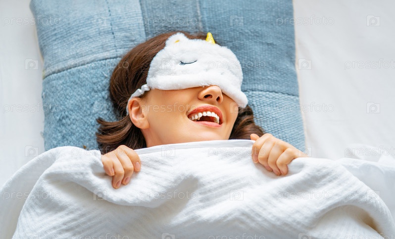 Женщина просыпается в спальне