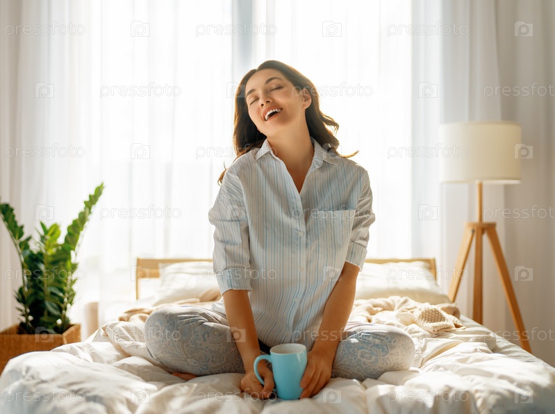 Женщина наслаждается солнечным утром