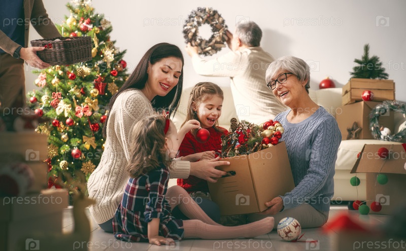 Семья готовится к Рождеству