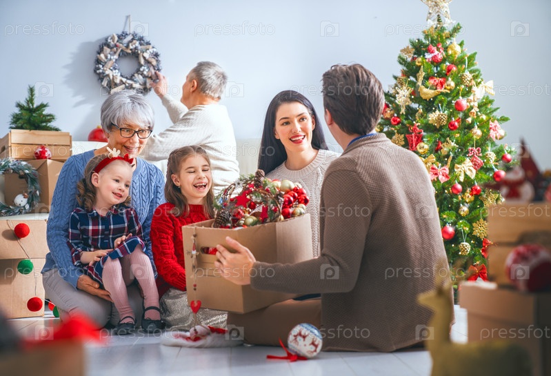 Семья готовится к Рождеству