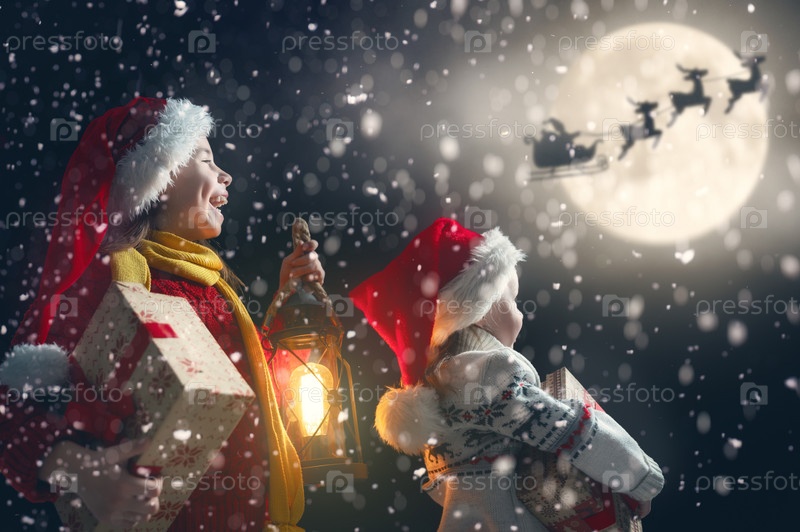 Дети с рождественскими подарками