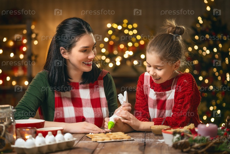 Семья готовит рождественское печенье