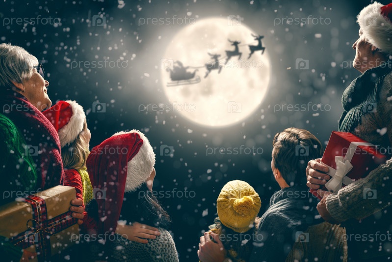 Семья наслаждается Рождеством