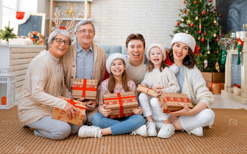 Семья празднует рождество