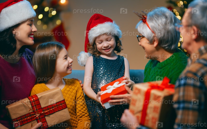 Семья празднует рождество