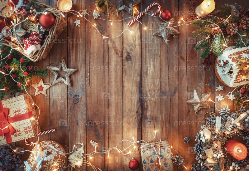 Рождественские подарочные коробки на деревянном столе