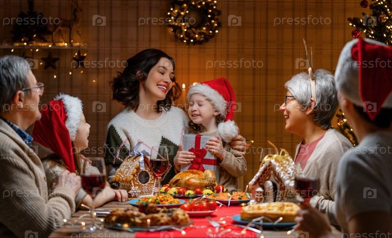 Семья празднует рождество