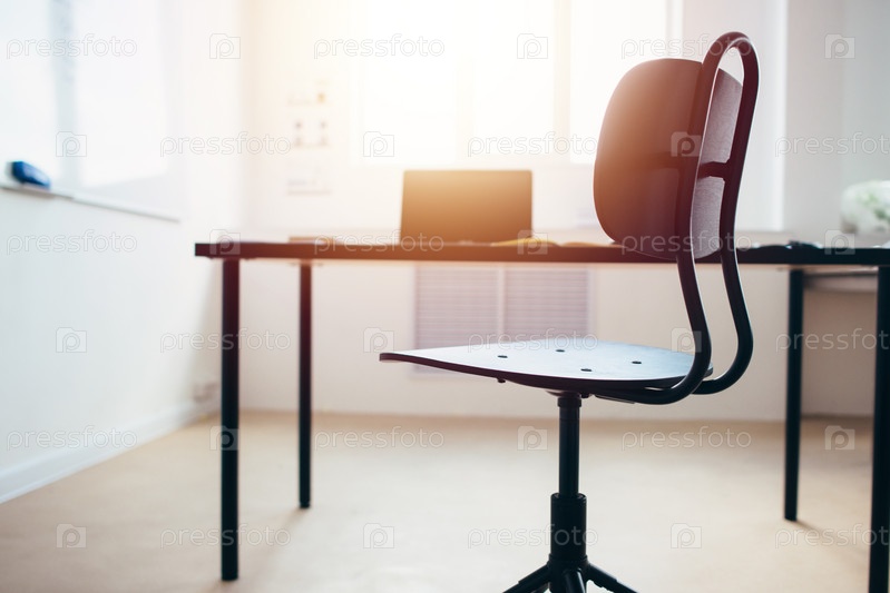 Пустой стул для работы, стол с ноутбуком