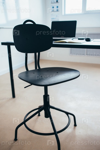 Пустой стул для работы, стол с ноутбуком