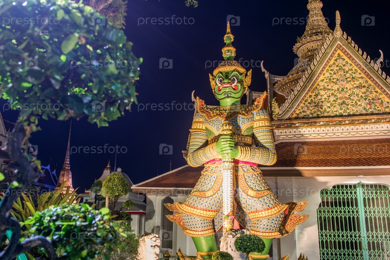 Буддийский храм Ват Арун Храм Рассвета со стражами, защищающими ворота. Бангкок, Тайланд