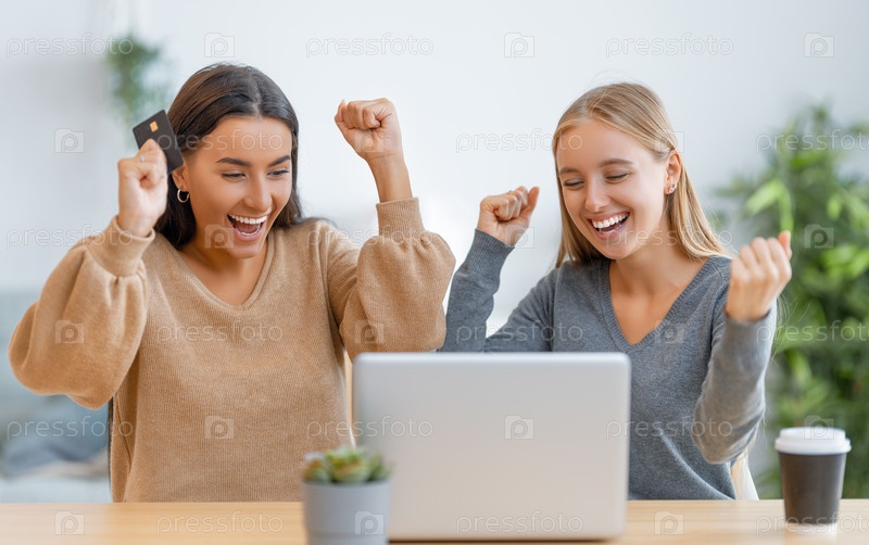Женщины совершают покупки в Интернете
