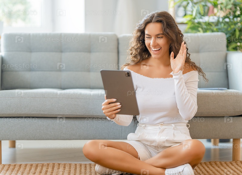 Женщина использует планшетный компьютер