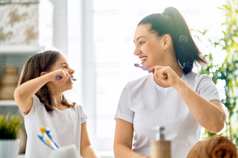 Семья чистит зубы