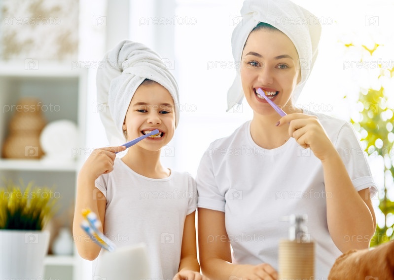 Семья чистит зубы