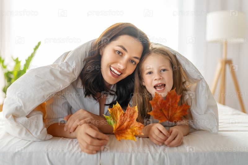 Девочка и мама наслаждаются солнечным утром