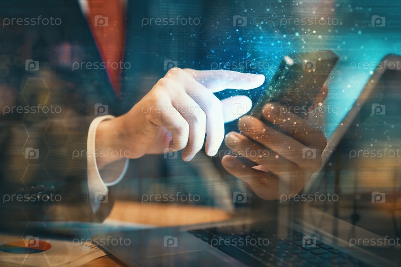 Бизнесмен использует смартфон