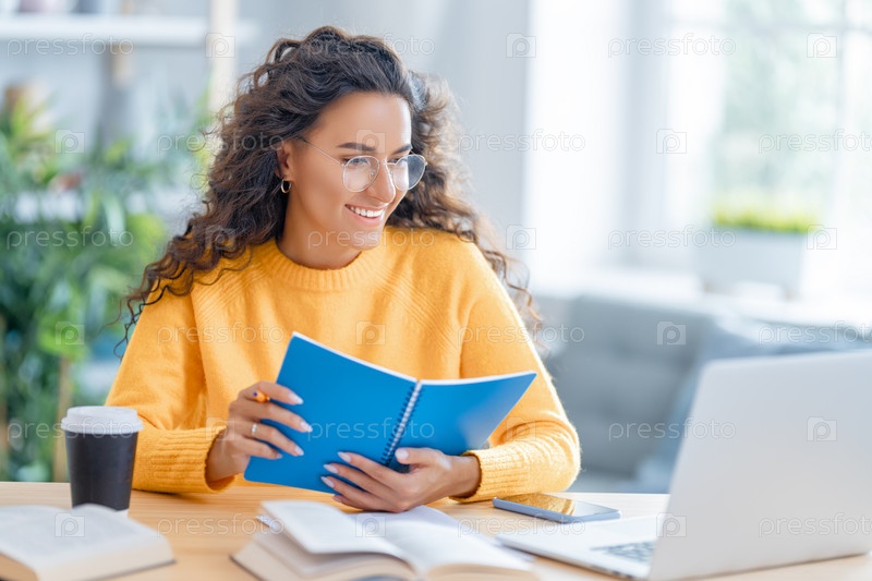 Женщина работает на ноутбуке дома