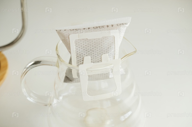 Капельный мешок кофе крупным планом. Легкий простой метод заваривания, новая тенденция