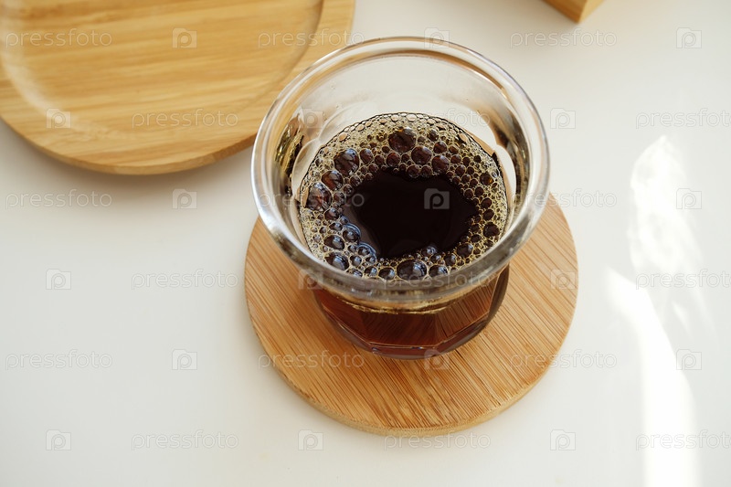 Очень шипучий газированный кофе в стакане. Ручное пивоварение, специальная концепция третьей волны