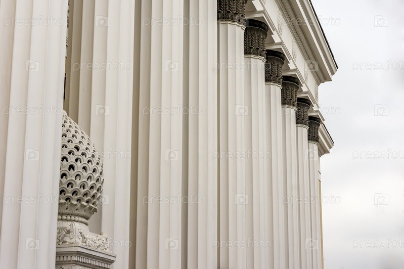 Москва, Россия - 16 марта 2017 г.: Центральный павильон на ВДНХ. Фрагмент. Образец архитектурного стиля советского периода
