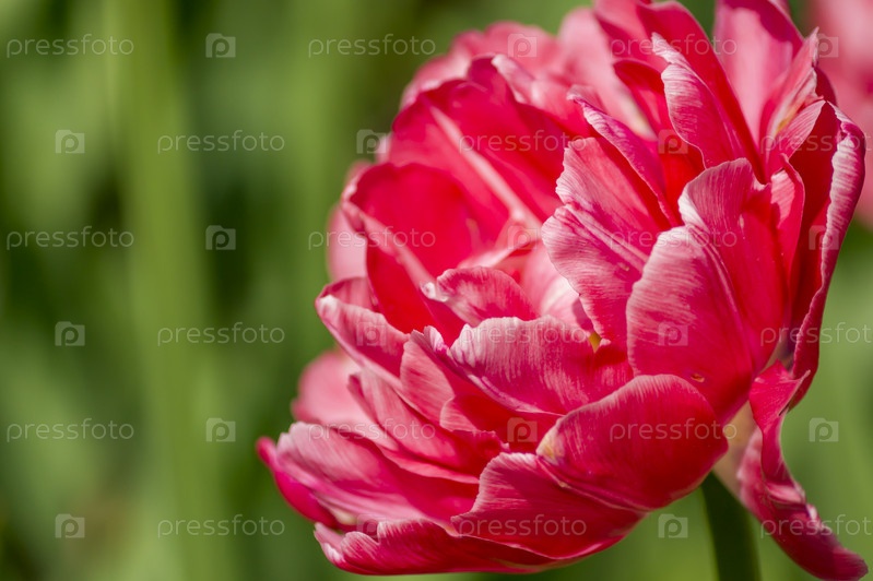 Крупный план розового тюльпана на зеленом фоне