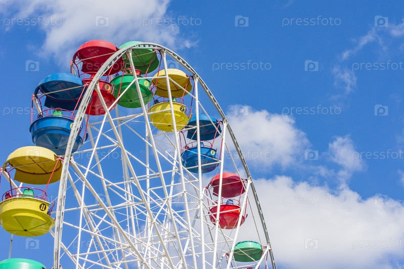 Красочное колесо обозрения на фоне голубого неба