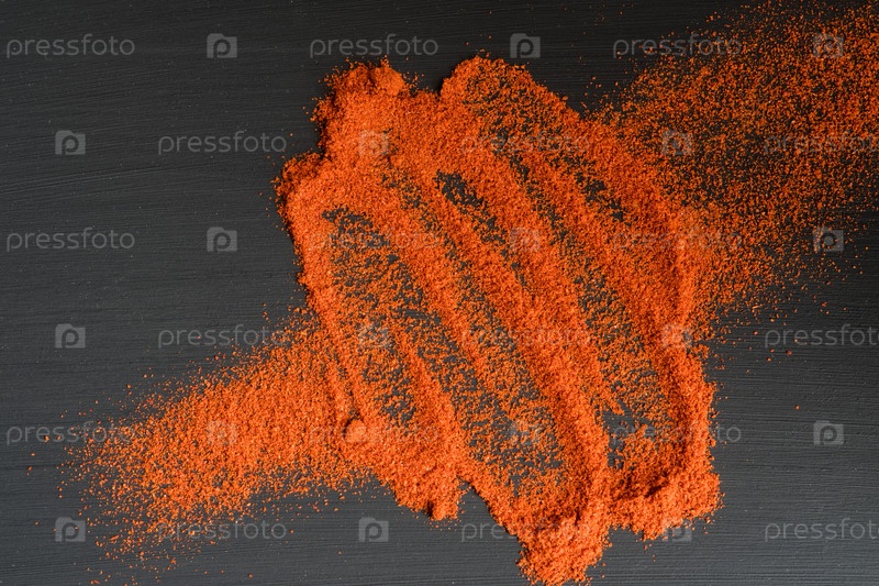 Порошок паприки на черном фоне, вид сверху