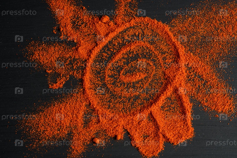 Порошок паприки на черном фоне, вид сверху