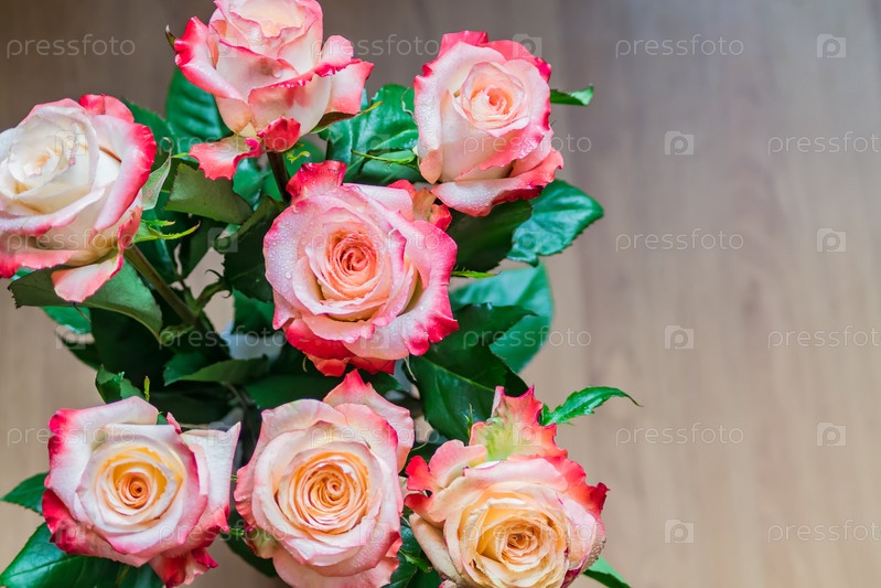 Крупный план розовых роз с каплями воды. Цветочный фон