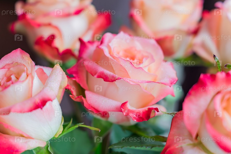 Крупный план розовых роз с каплями воды. Цветочный фон