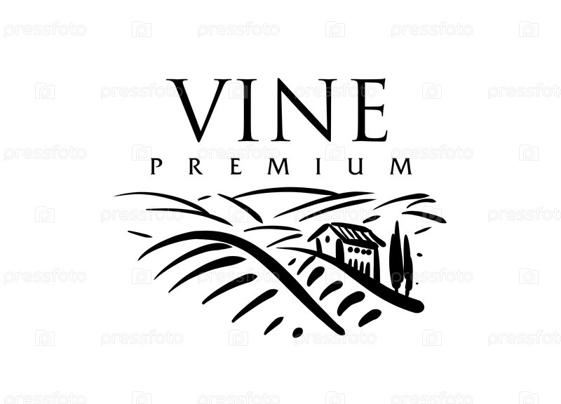 Логотип, нарисованный вручную. Пейзаж виноградников для изготовления вина