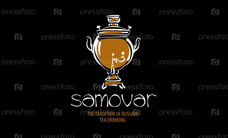 Нарисованный векторный логотип Самовар на черном фоне