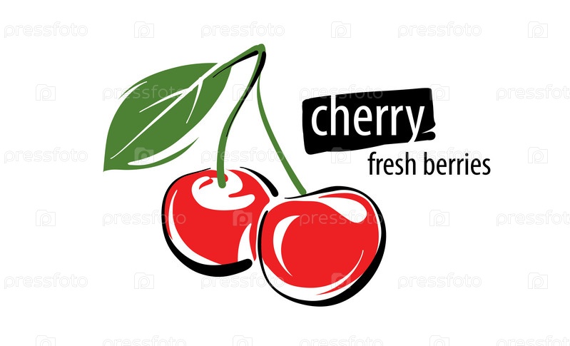 Нарисованная векторная вишня на белом фоне