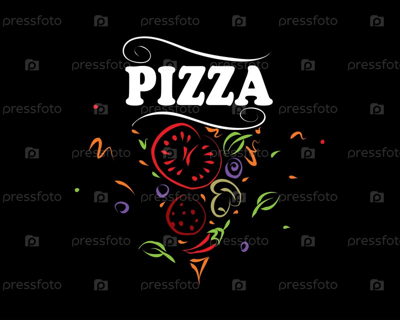 Ручной рисунок векторного логотипа пиццы на черном фоне
