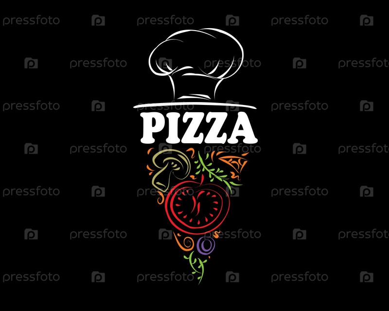 Ручной рисунок векторного логотипа пиццы на черном фоне