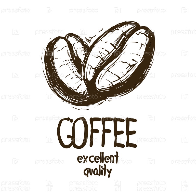 Векторный логотип с нарисованными кофейными зернами на белом фоне