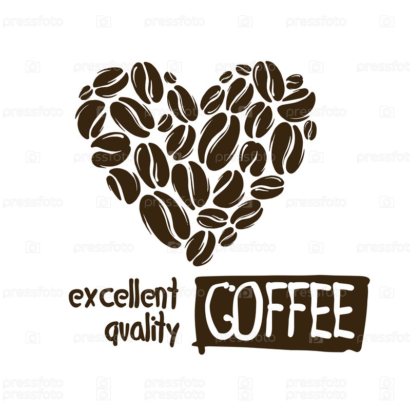 Сердце кофейных зерен на белом фоне. Векторный логотип на белом фоне
