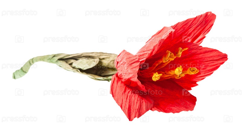 Искусственный красный цветок ручной работы из гофрированной бумаги