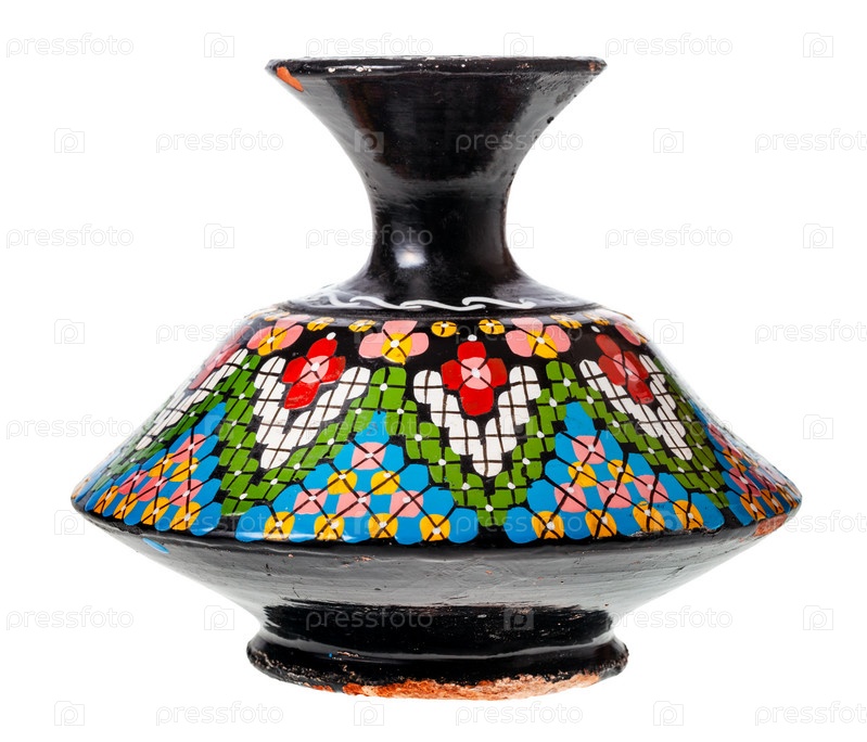 Изолированная керамическая ваза ручной работы, вид сбоку