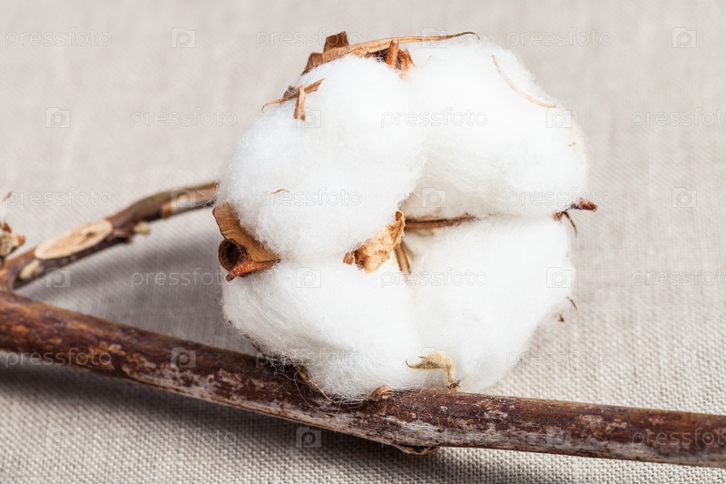 Шарик с ватой на хлопчатобумажной ткани крупным планом