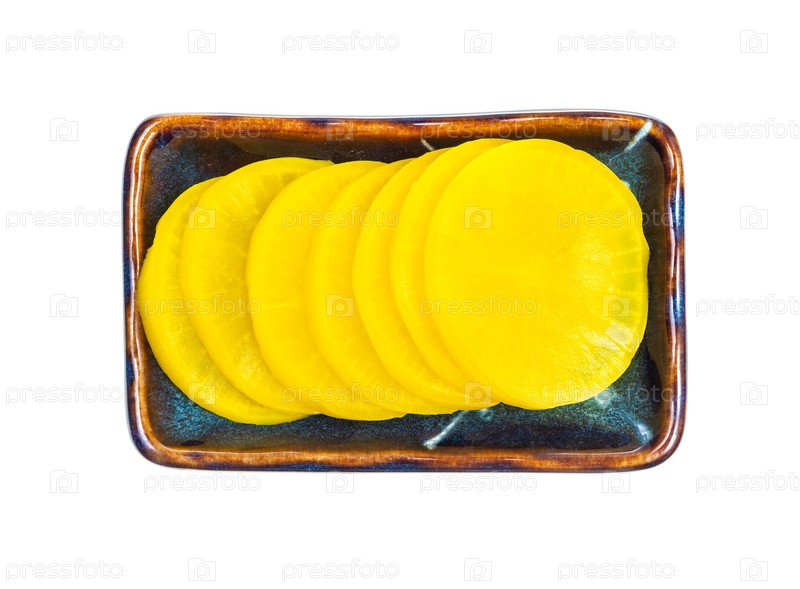Изолированный вид сверху на гарнир Такуан (Данмудзи)