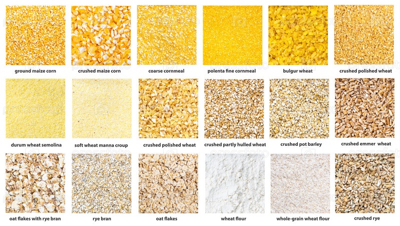 Различные дробленые крупы с именами крупным планом