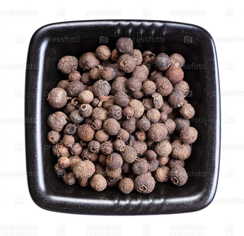 Перец душистый ямайский в черной миске изолирован