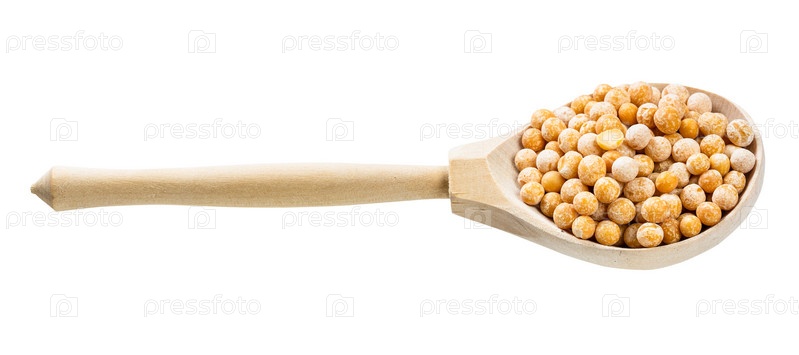 Деревянная ложка с сушеным цельным желтым горошком изолирована