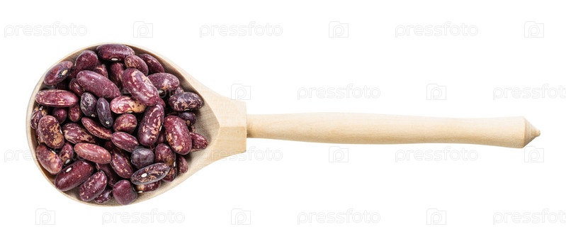 Вид сверху на ложку с красной пятнистой фасолью пинто