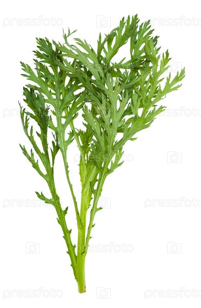 Изолированная веточка свежей съедобной зелени хризантемы